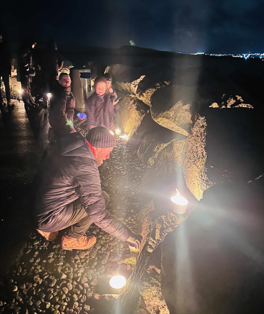 20:00 Gengið út að vita, kveikt á kertum og minningarorð rituð á vitann.